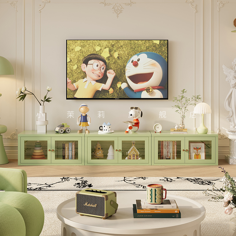 新款钢制奶油风无甲醛电视柜落地客厅小户型模块组合书柜储物柜子