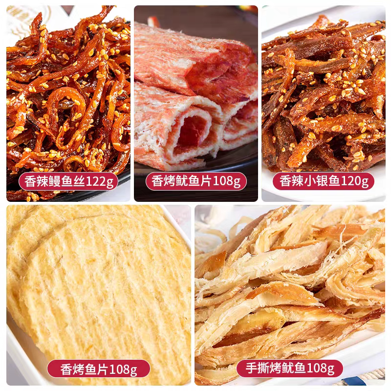 海南特产昌茂海鲜南海老渔民香烤鱼片手撕鱿鱼香辣小银鳗鱼丝礼盒