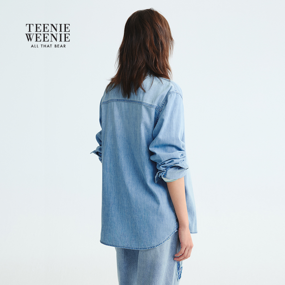 【双11预售】TeenieWeenie小熊女装衬衫25秋复古宽松刺绣牛仔上衣