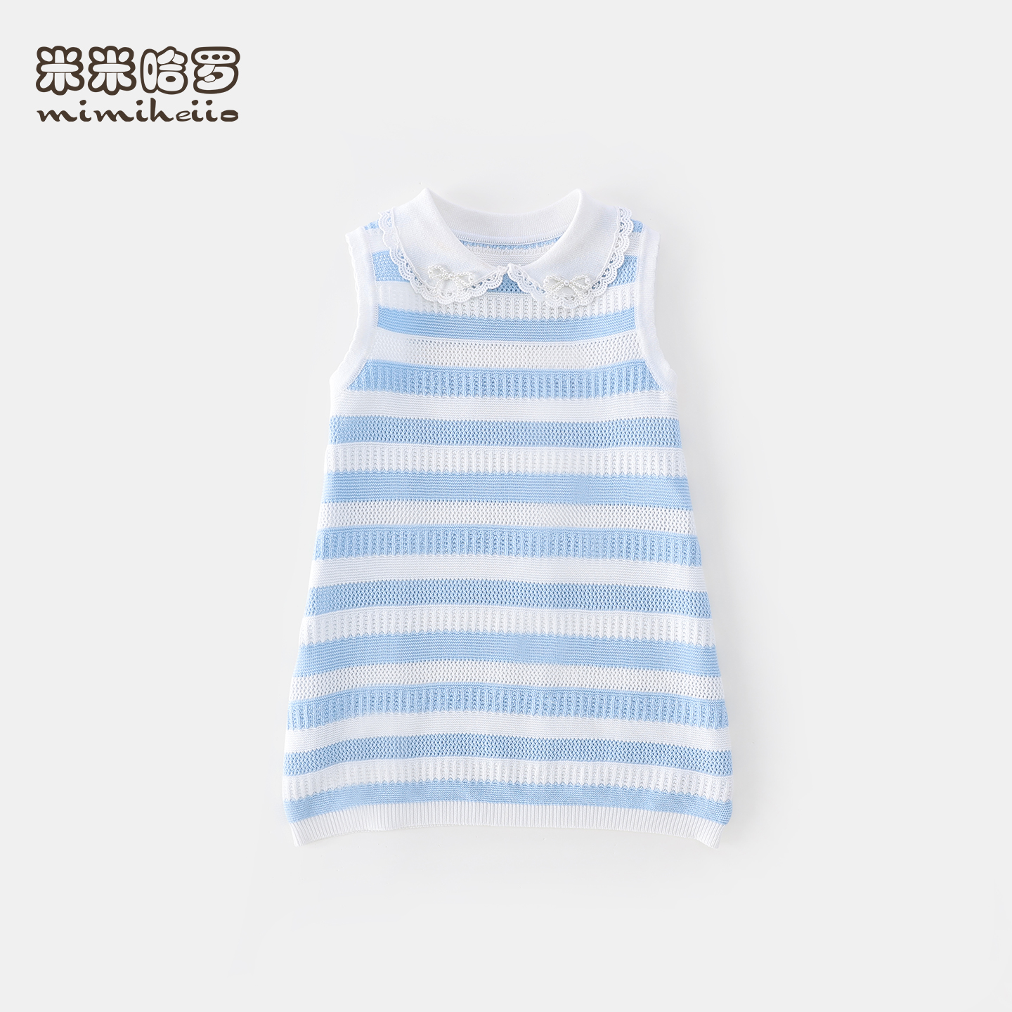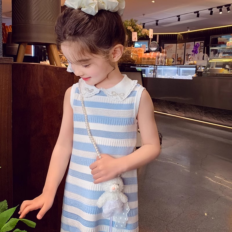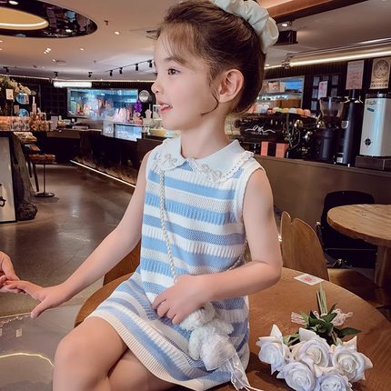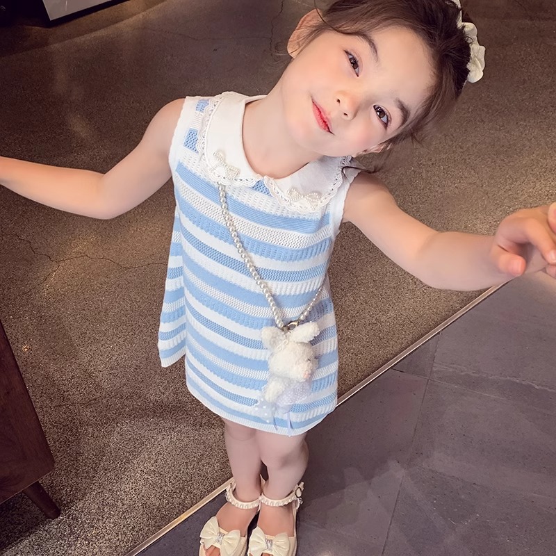 女童背心连衣裙夏装2025新款蓝白条纹设计感女孩洋气公主无袖裙子