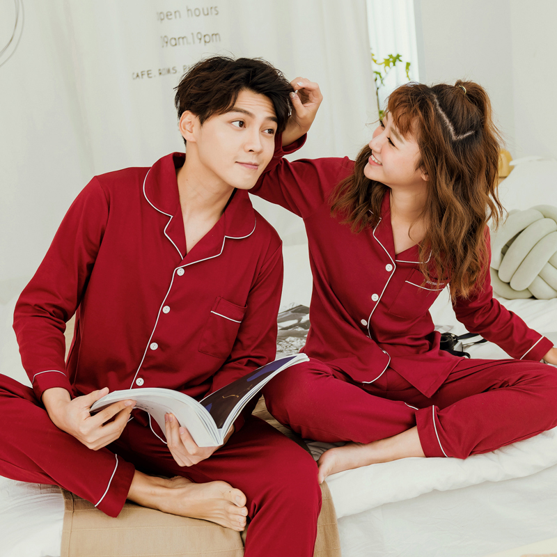新疆棉红色喜庆情侣睡衣加大码