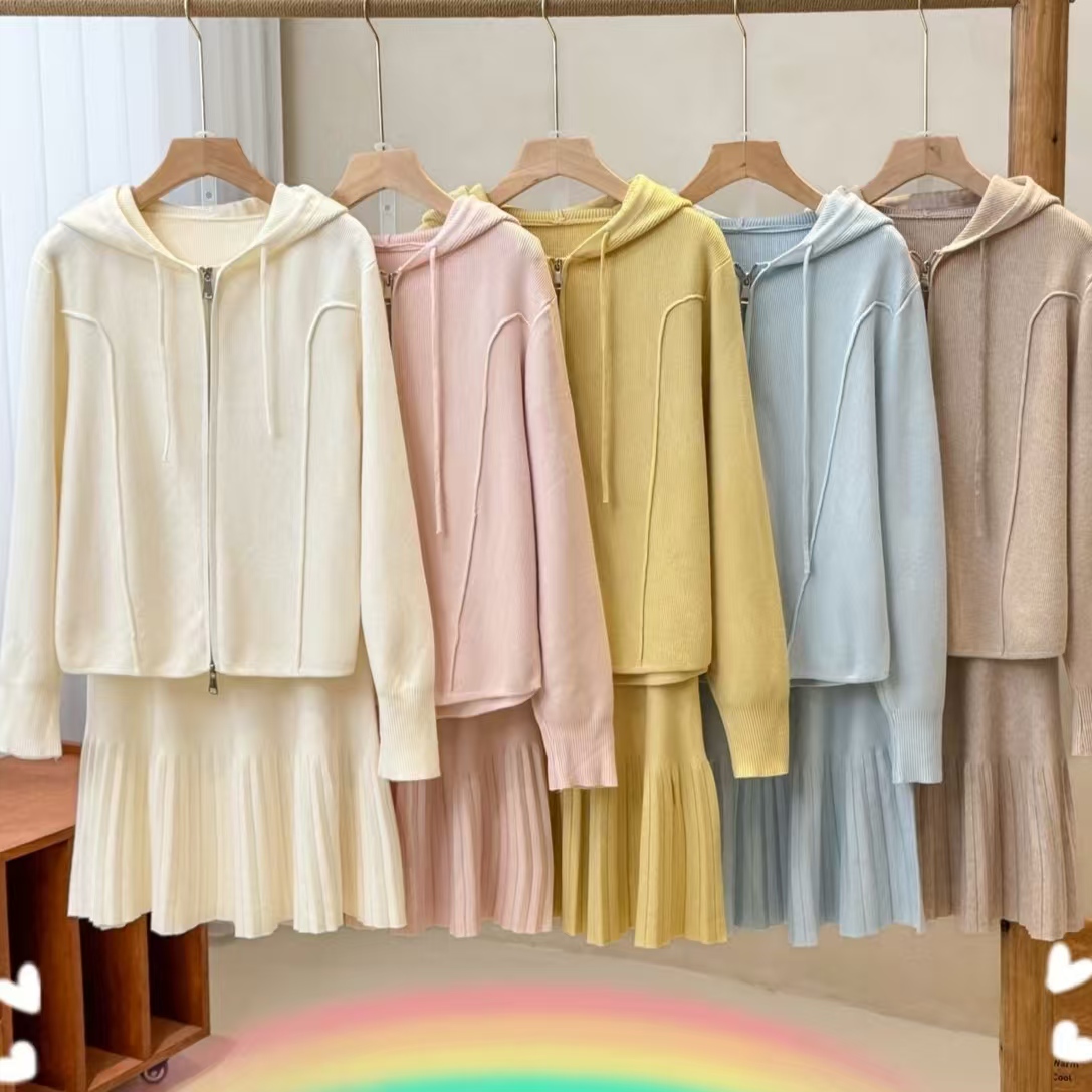 女装毛衣针织衫半身裙套装2025新款小香风秋装两件套连帽开衫外套