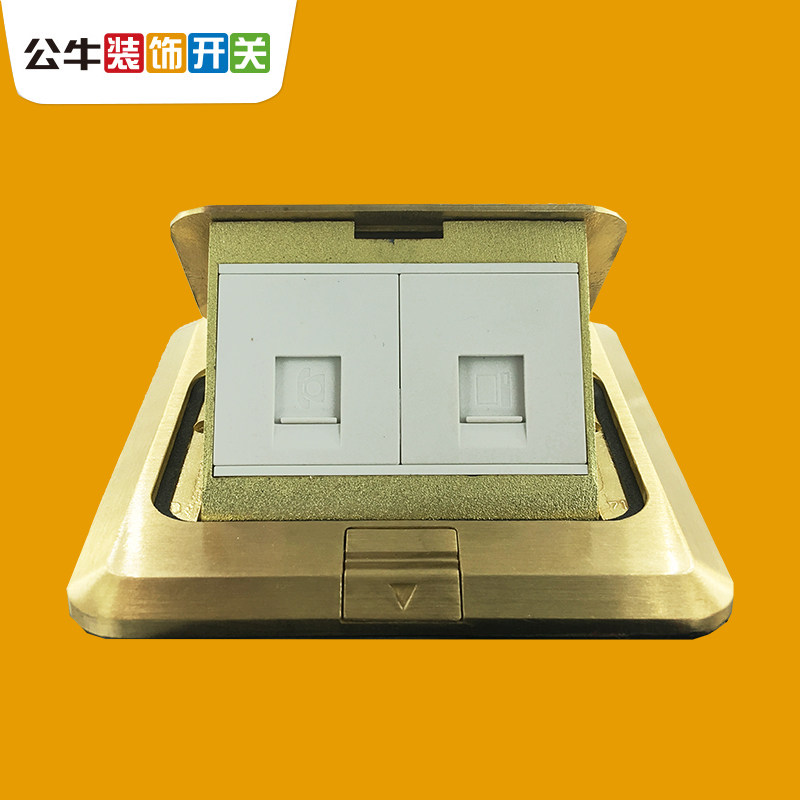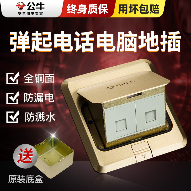 公牛地插防水弹起隐藏式地脚插座全铜地板地面插座网络电脑电话插