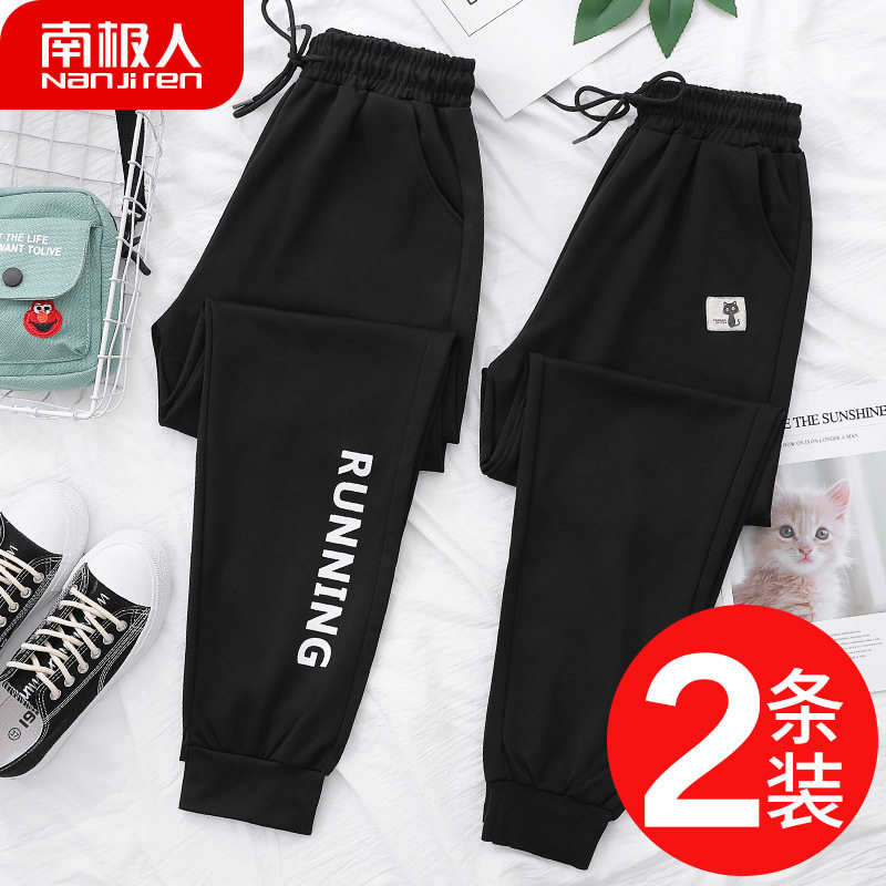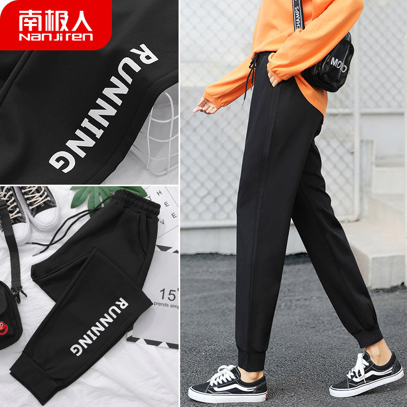 运动束脚裤女黑色春秋薄款2025哈伦裤女宽松大码休闲裤小个子新款