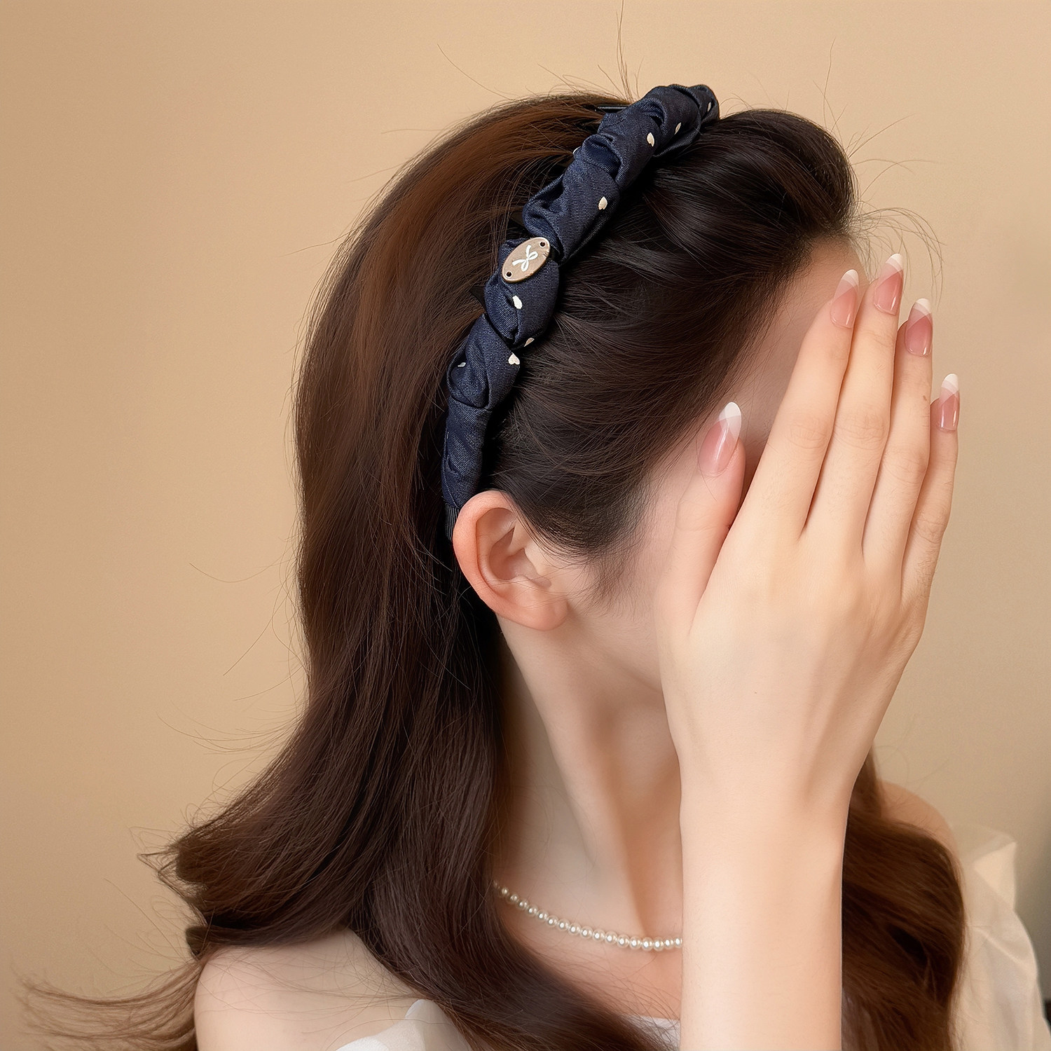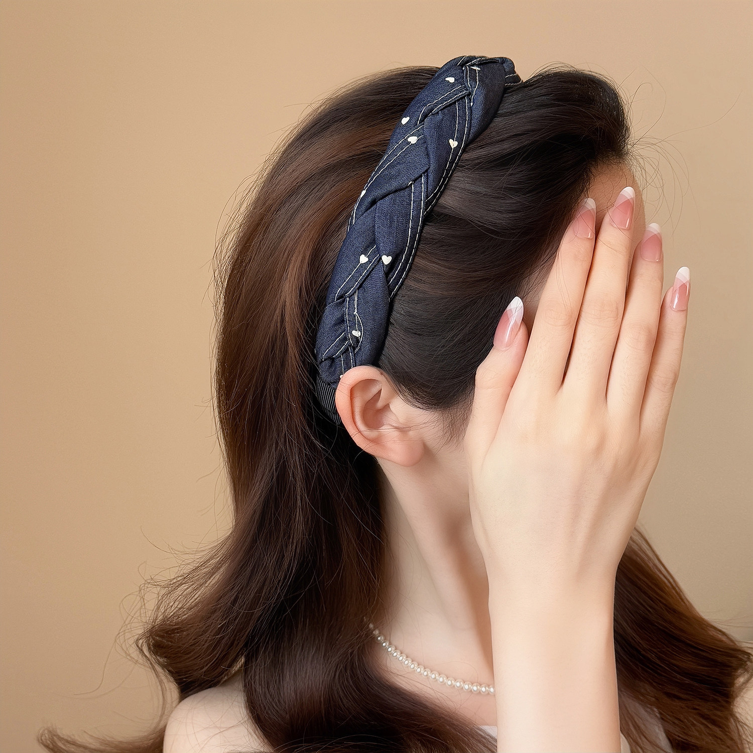 学院风牛仔蓝爱心波点发箍2025新款高级感百搭时尚高颅顶优雅头箍