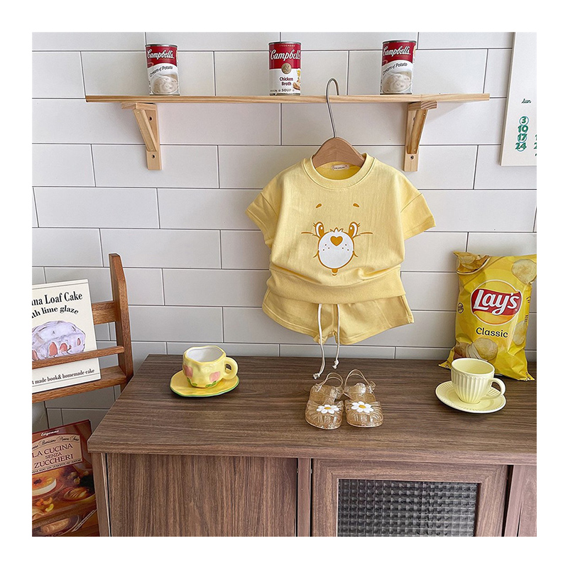 韩版童装2024儿童夏季婴儿卡通套装男女童舒适卡通短袖短裤套装