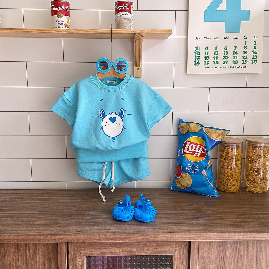 男女童夏季舒适卡通短袖短裤套装