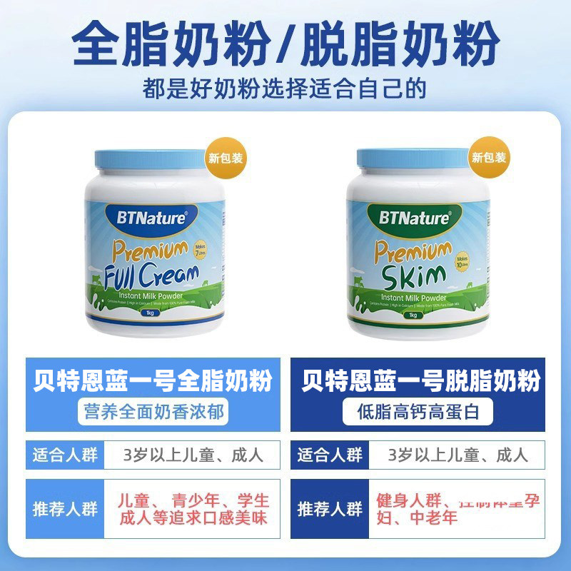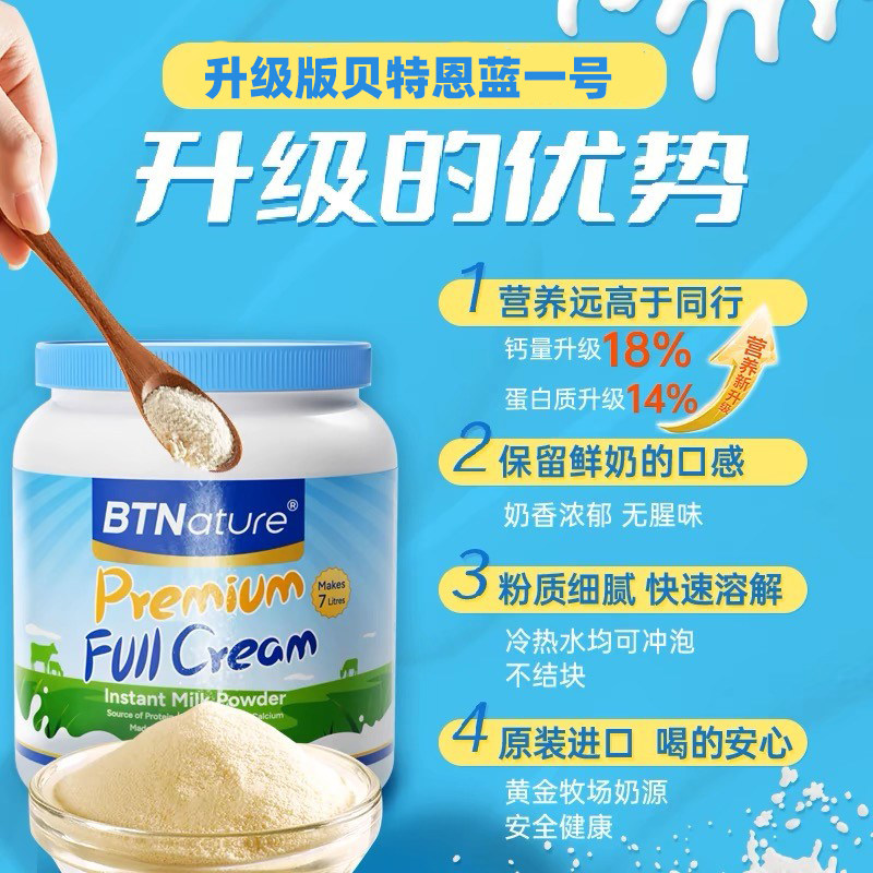 贝特恩蓝澳洲胖子全脂脱牛奶粉青少年儿童中老年高钙奶粉临期特价