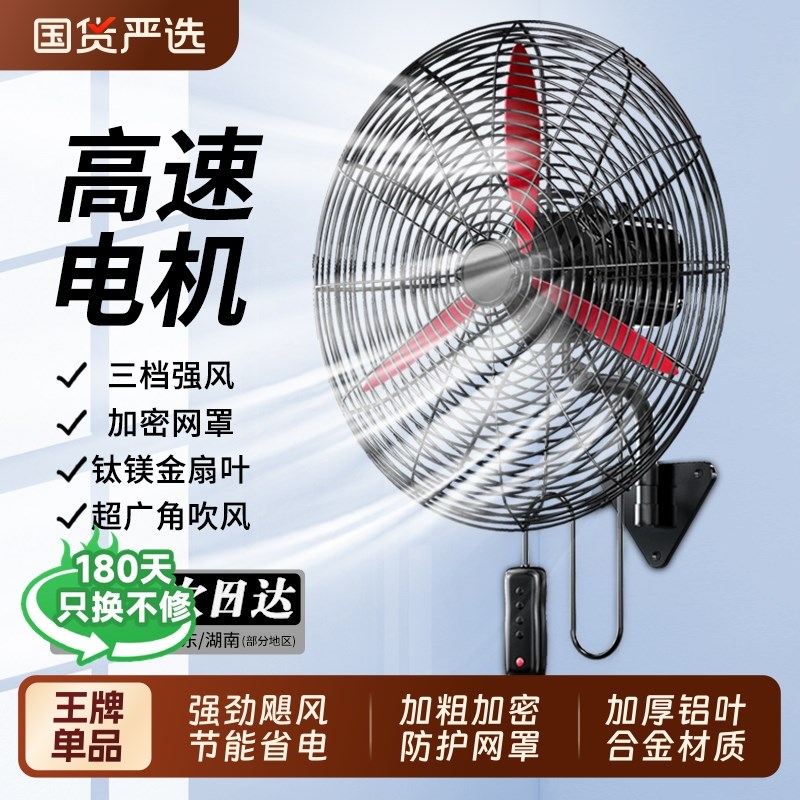 长城大功率工业风扇大风力壁扇强力壁挂式电风扇挂墙壁式牛角风扇