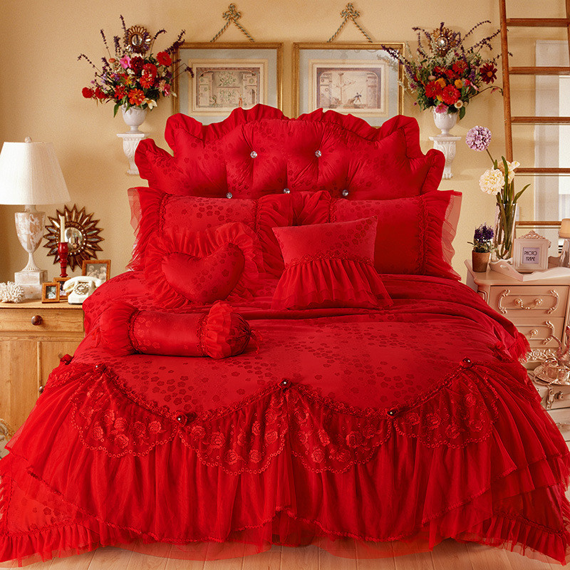专版蕾丝贡缎提花全棉花型公主四件套韩版床裙床罩婚庆床上用品