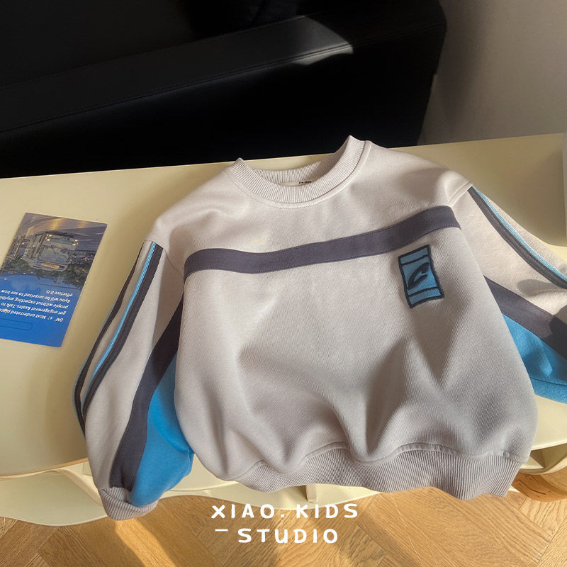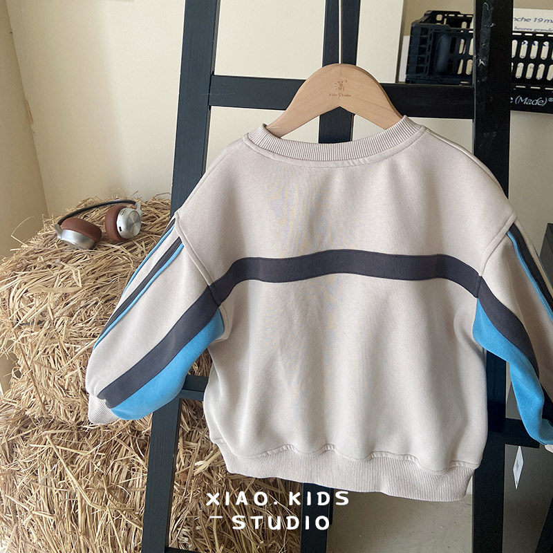 【中大童】奶杏色~春季儿童拼接运动圆领卫衣男童帅气纯棉长袖T恤