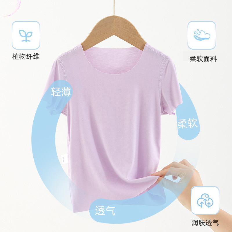 夏季儿童短袖中小童莫代尔T恤男女宝宝夏装圆领上衣婴儿凉快半袖