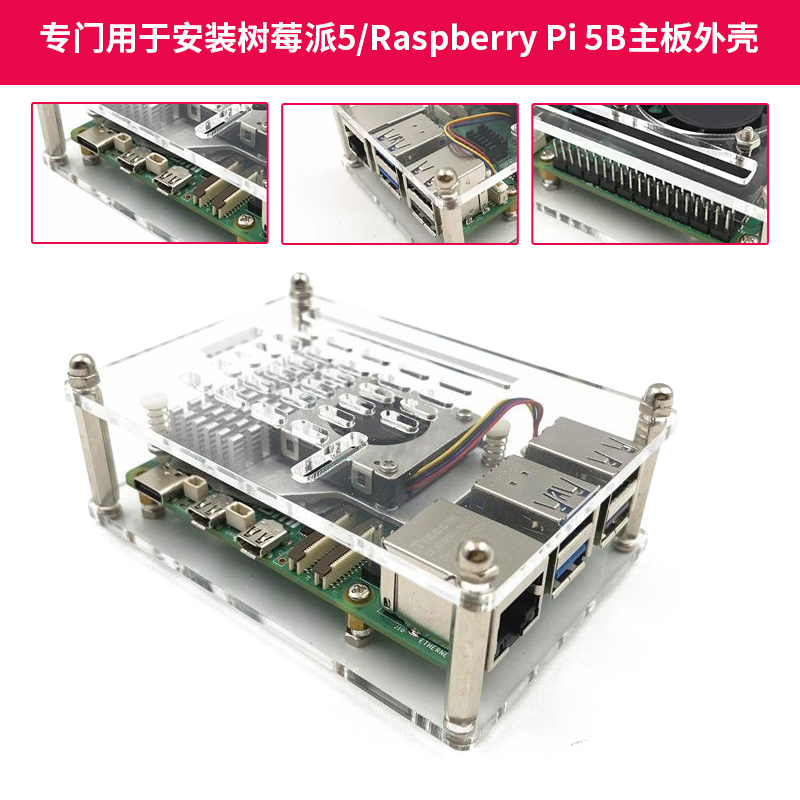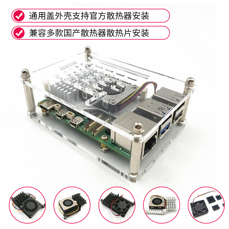 树莓派5代 5B/4B/3B+ 集群散热外壳 可堆叠亚克力保护壳支架盒子