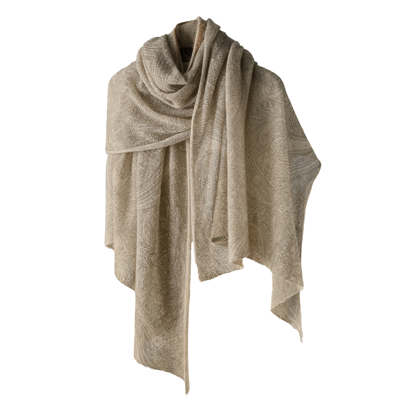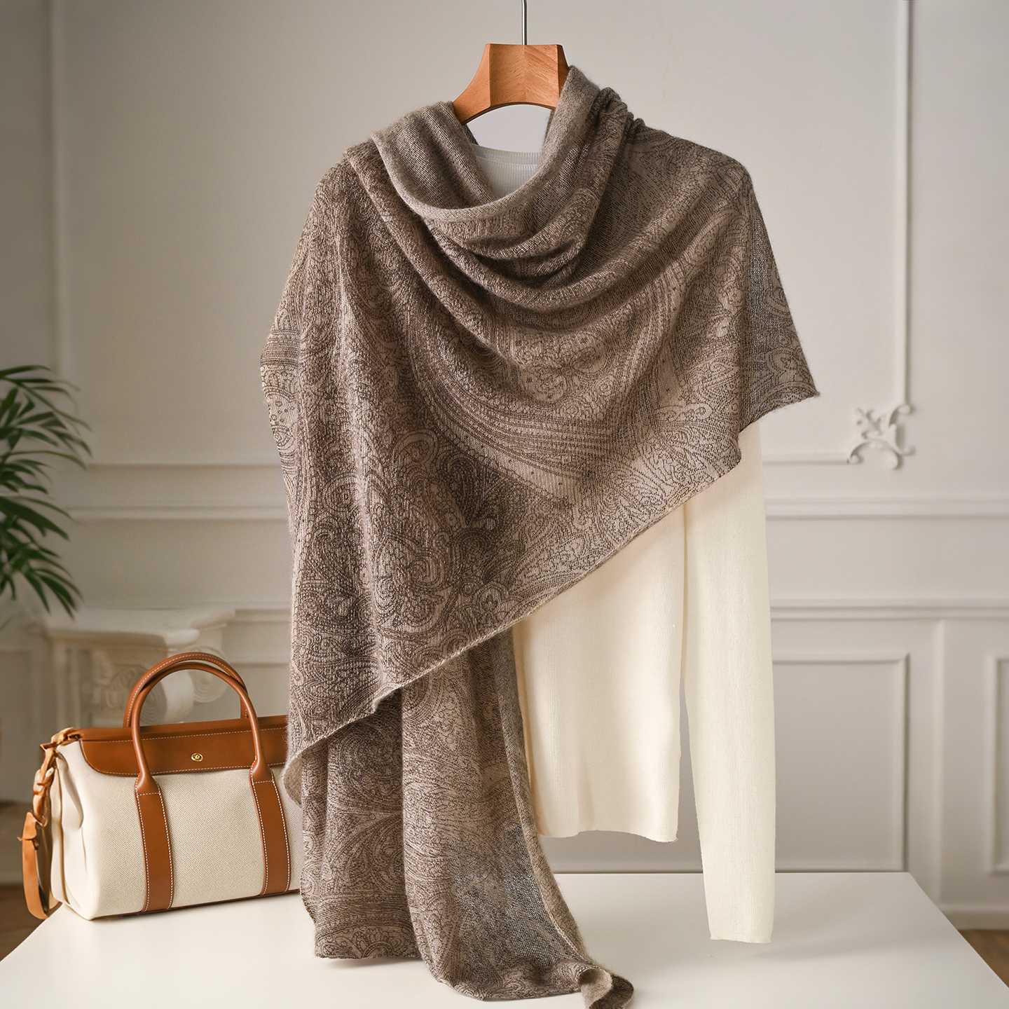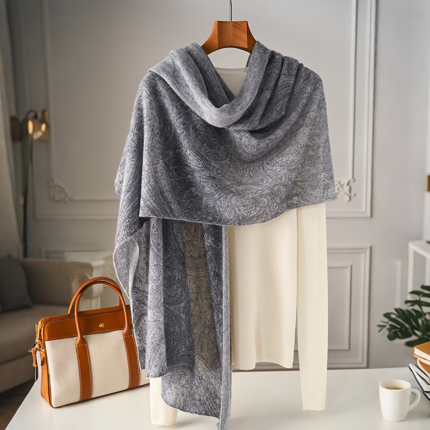 老钱羊绒围巾女冬季佩斯利纹披肩