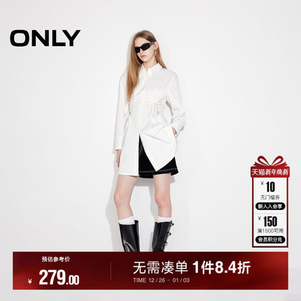ONLY设计感系带翻领收腰衬衫