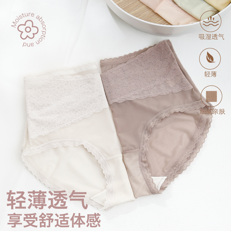 黛丝少女冰丝内裤女夏季超薄款蕾丝边7A银离子抗菌裆透气三角短裤