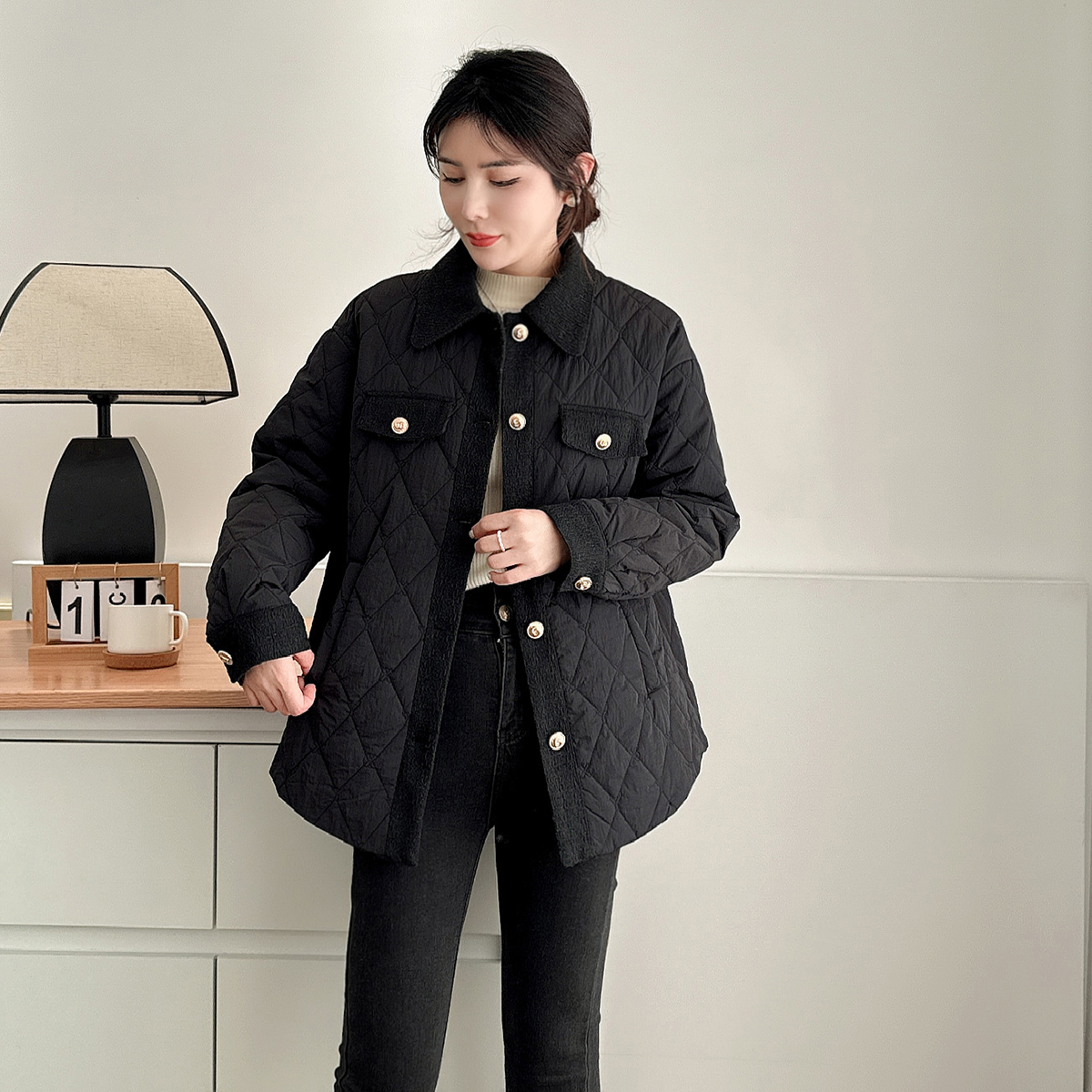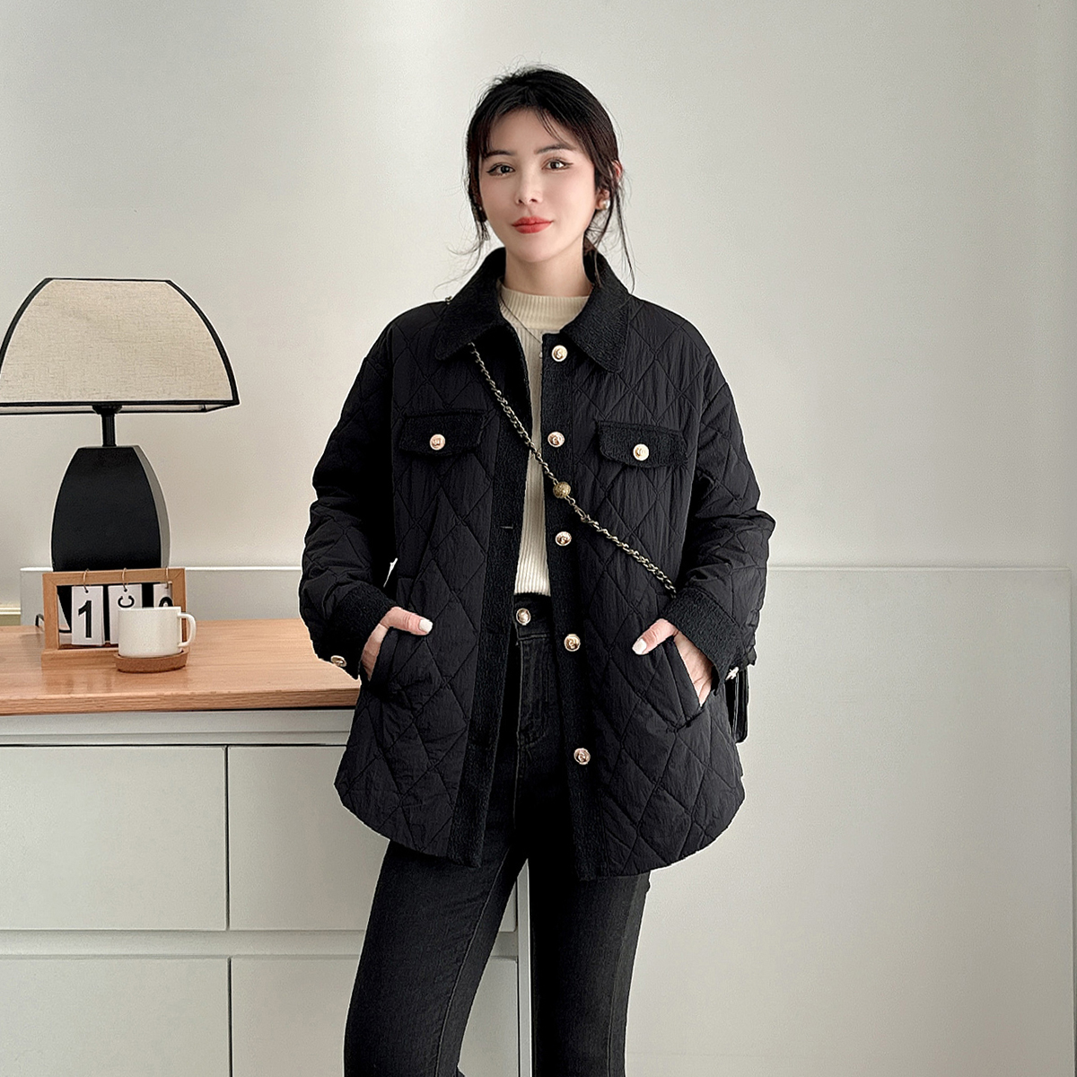 小香风韩系棉服女大码轻薄夹棉衣