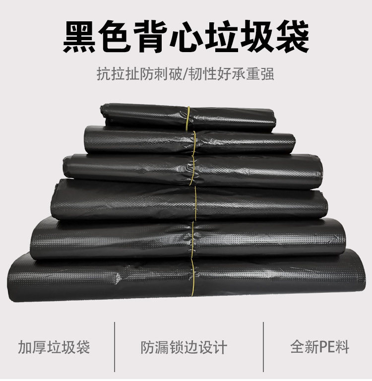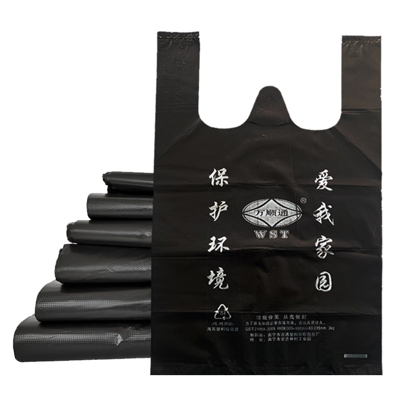 万顺通黑色家用厨房办公室手提加厚垃圾袋背心式塑料中大号收纳袋