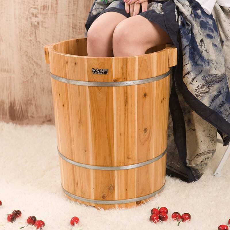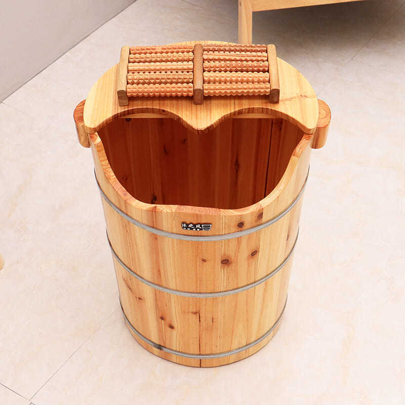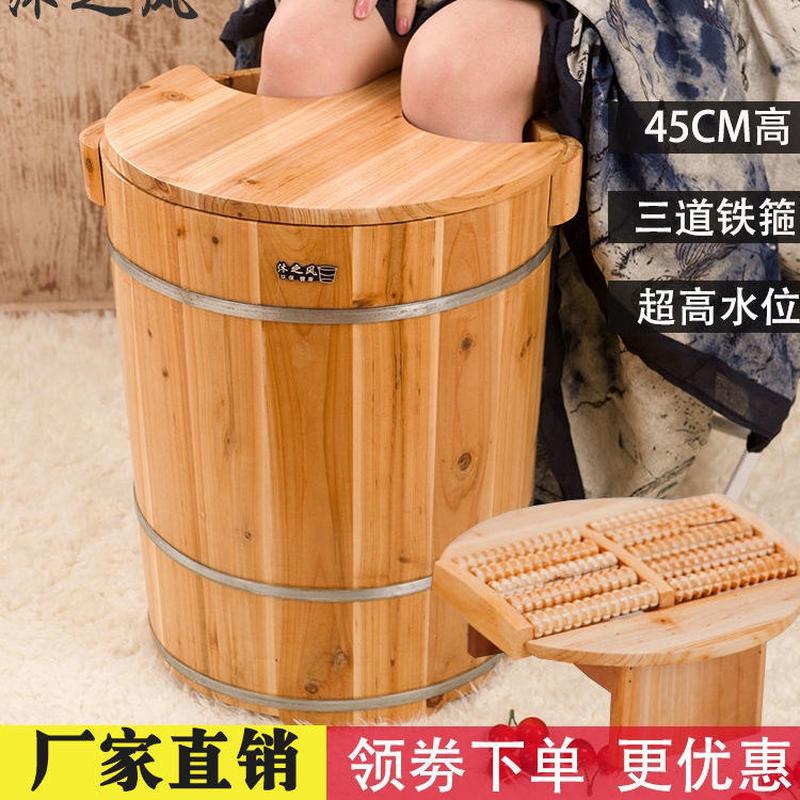 45CM高杉木足浴木桶泡脚木桶洗脚盆洗脚桶泡脚盆木桶带盖