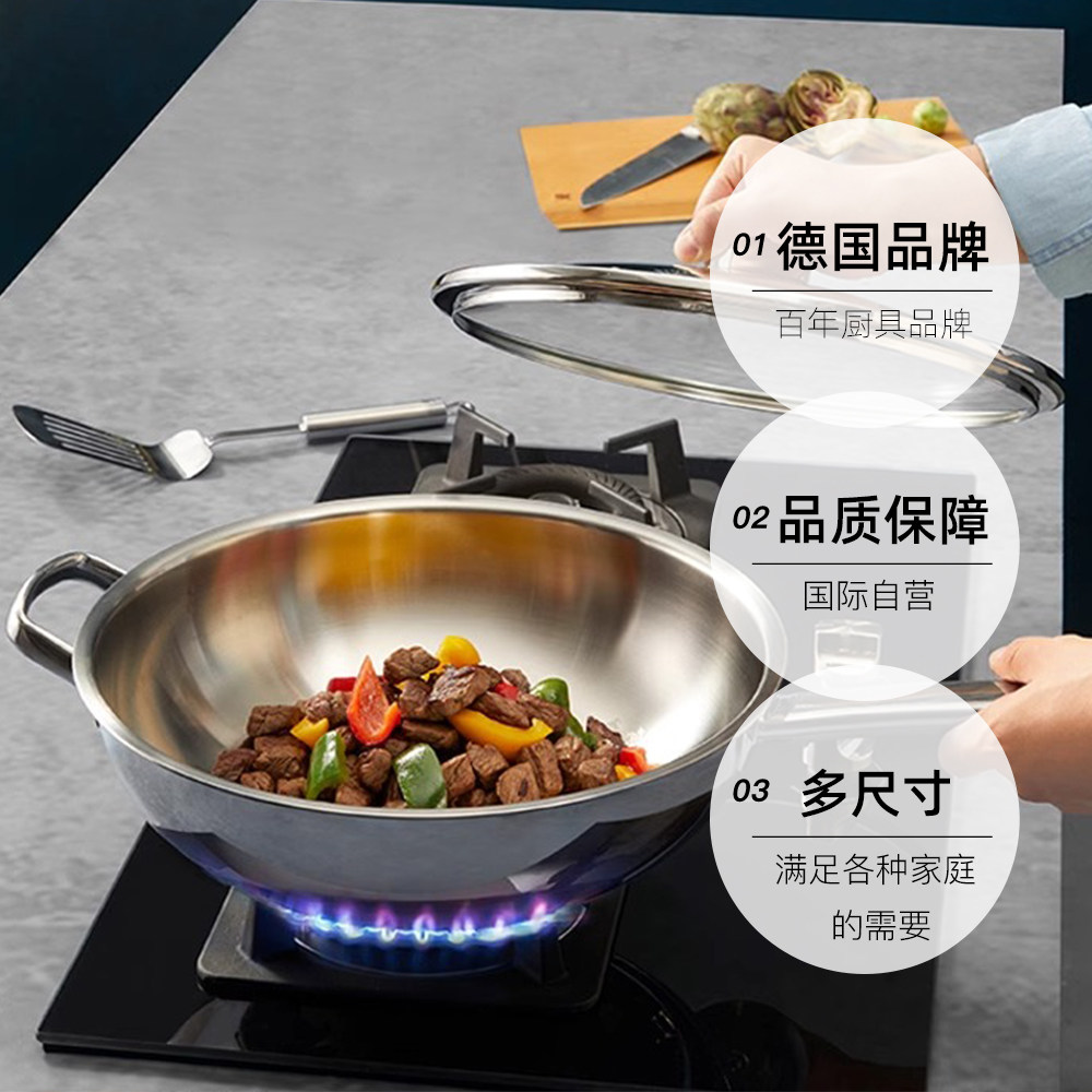 【自营】德国WMF福腾宝不锈钢炒锅燃气灶电磁炉通用无涂层炒菜锅