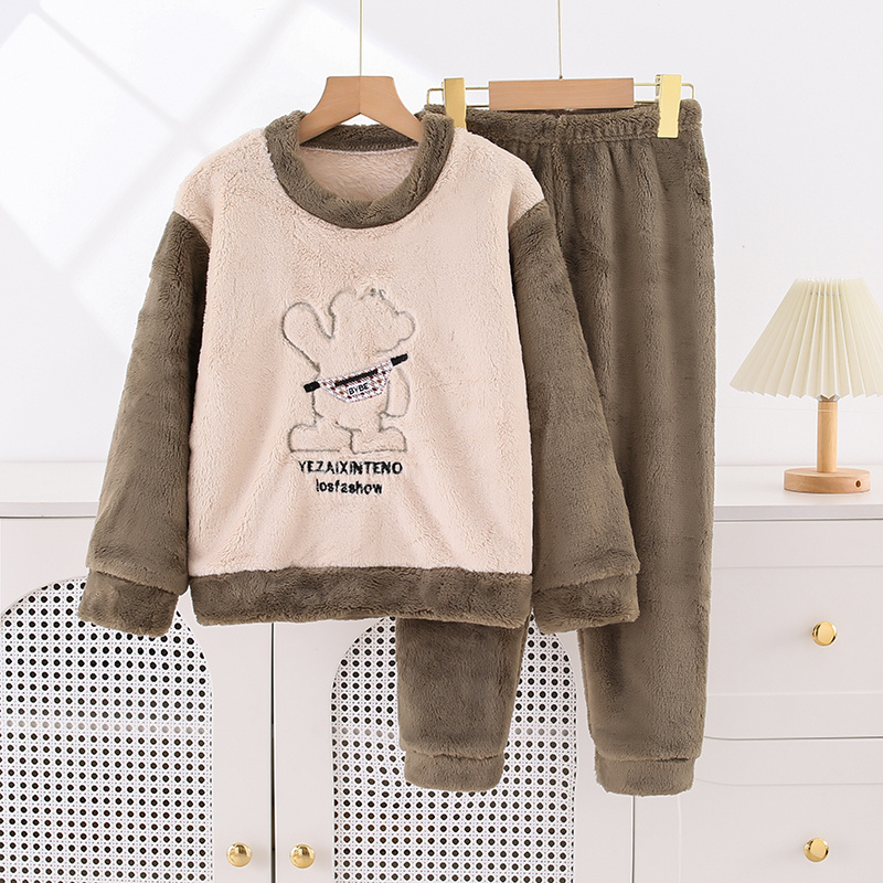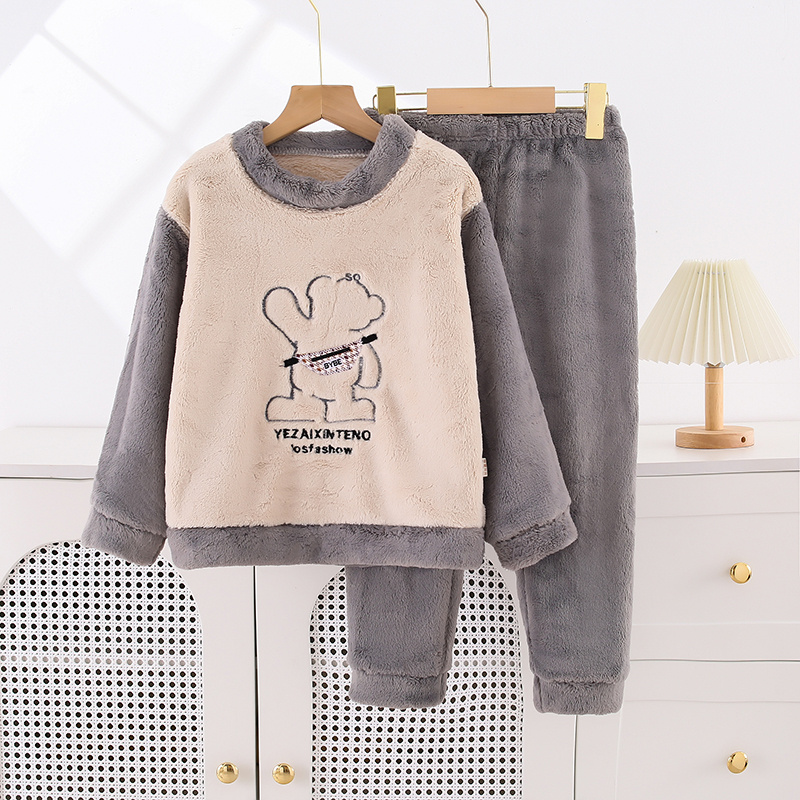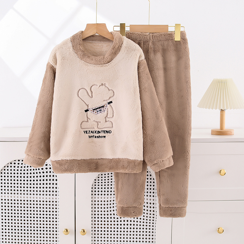 秋冬季男童女童家居服珊瑚绒加厚法兰绒儿童小孩套头加绒睡衣套装