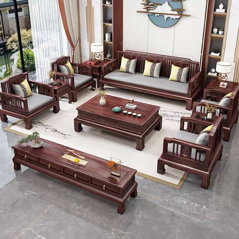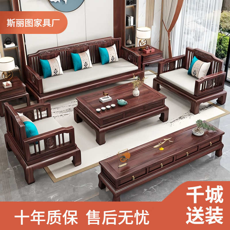 新中式乌金木实木沙发现代简约大小户型客厅冬夏两用客厅红木家具