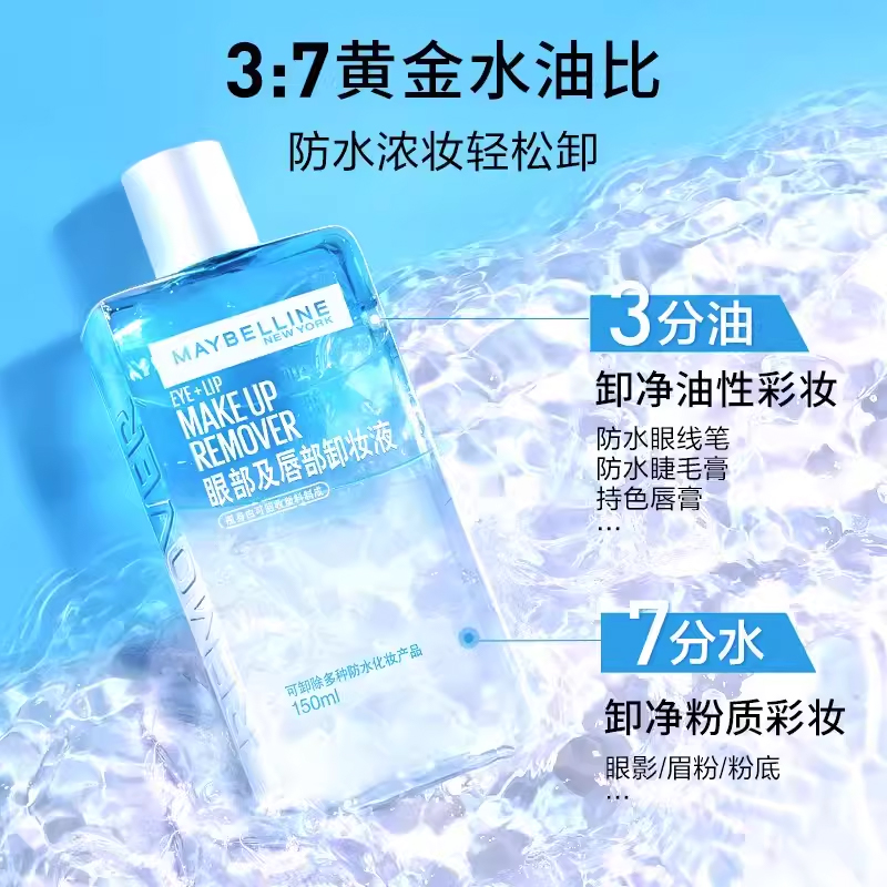 新版升级版!美宝莲眼唇卸妆液水油分离温和深层清洁不刺激全脸卸