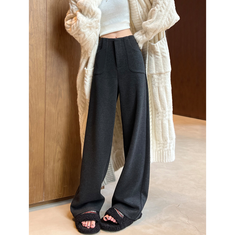 白色窄版阔腿裤女秋冬季加绒高腰垂感显瘦羊毛呢西装裤休闲直筒裤