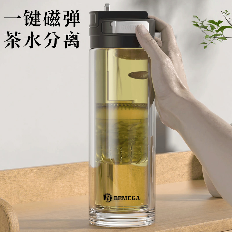 英国Bemega磁弹泡茶杯茶水分离高硼硅双层玻璃杯男磁吸保温水杯子