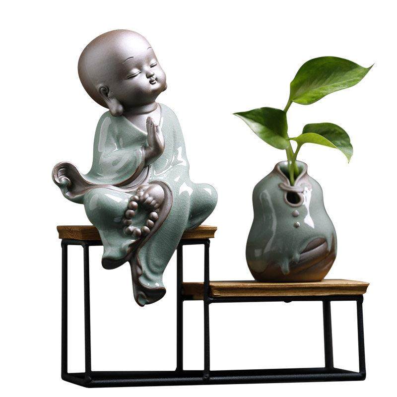 小和尚摆件可爱小沙弥新中式禅意客厅博古架陶瓷工艺品书房软装饰