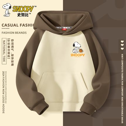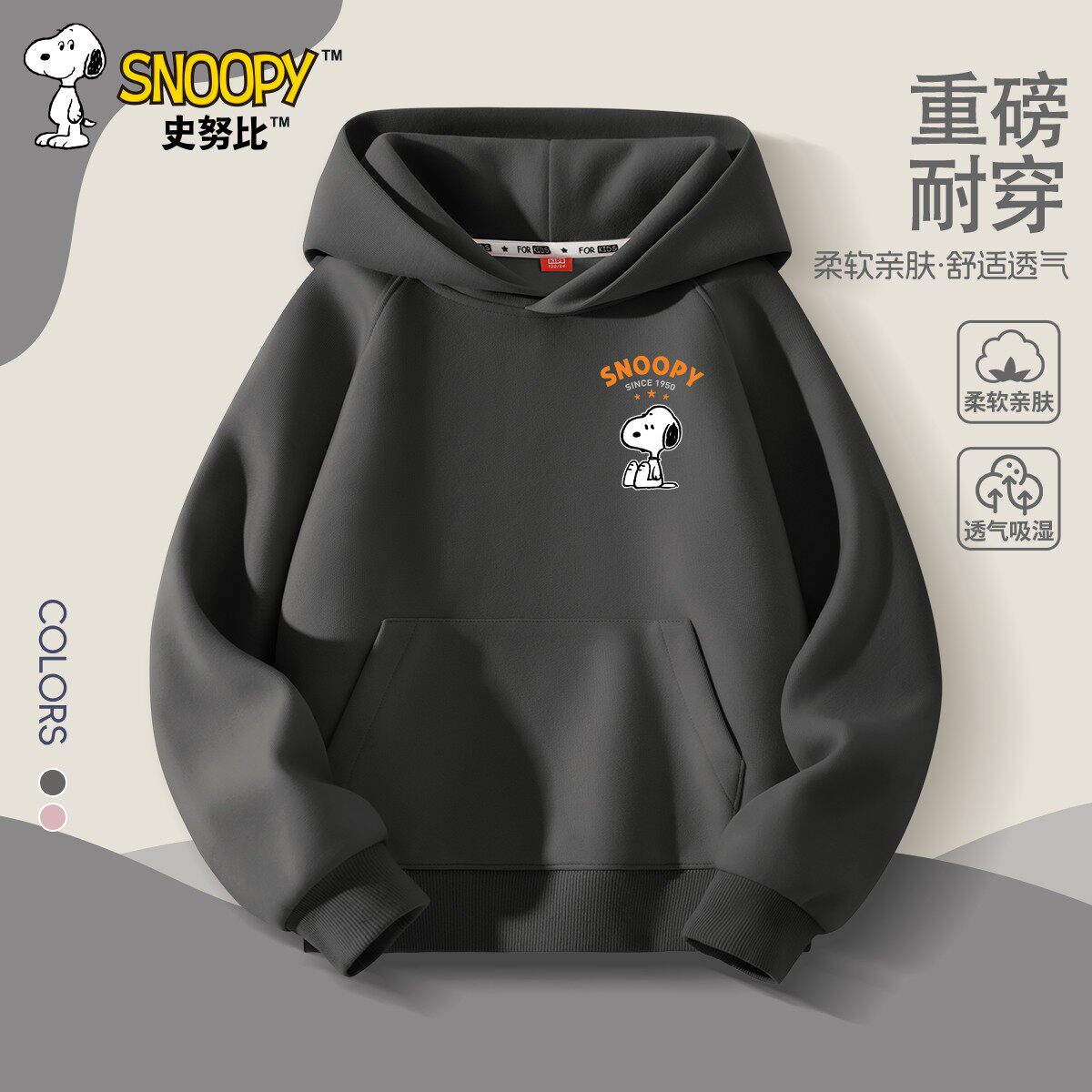 史努比男童卫衣白色连帽2026新款儿童春装上衣宽松版中小童外套男
