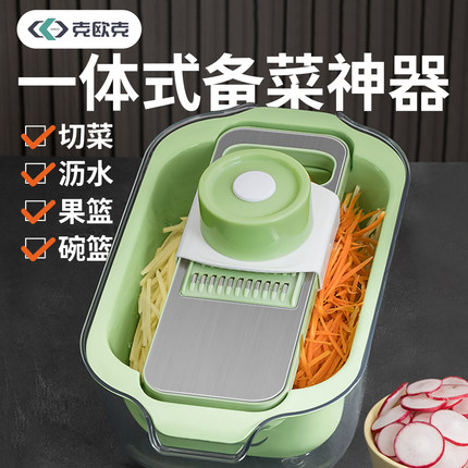 克欧克不锈钢切菜神器家用土豆切丝器多功能萝卜擦刨丝自带沥水篮
