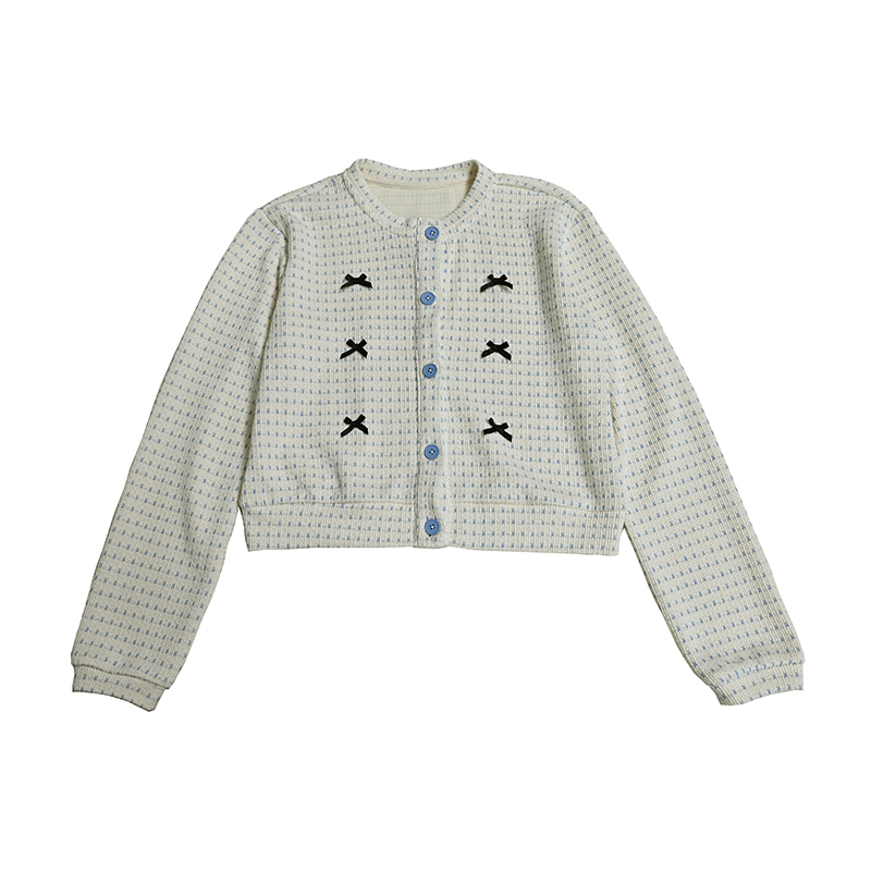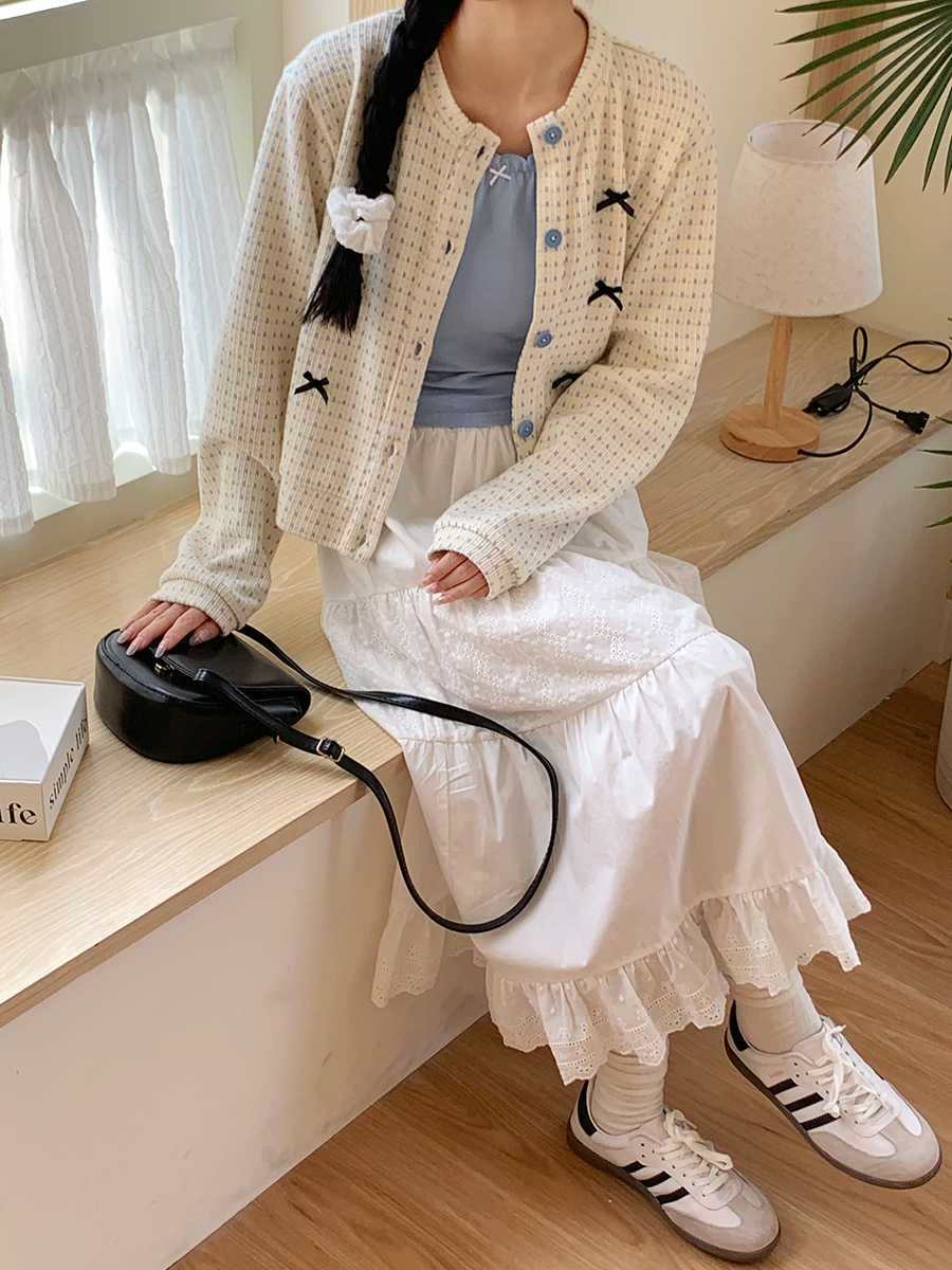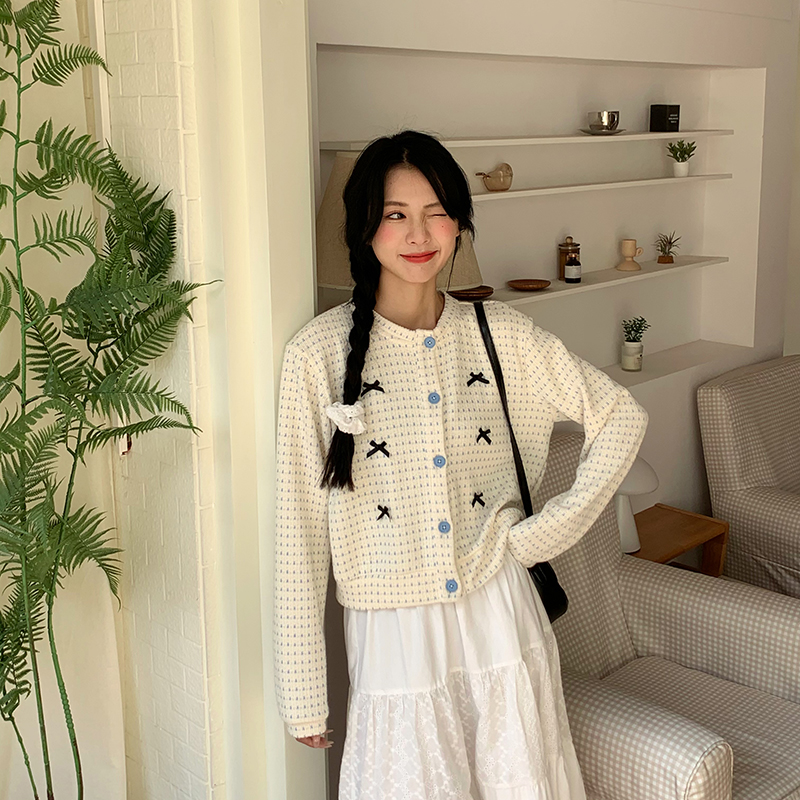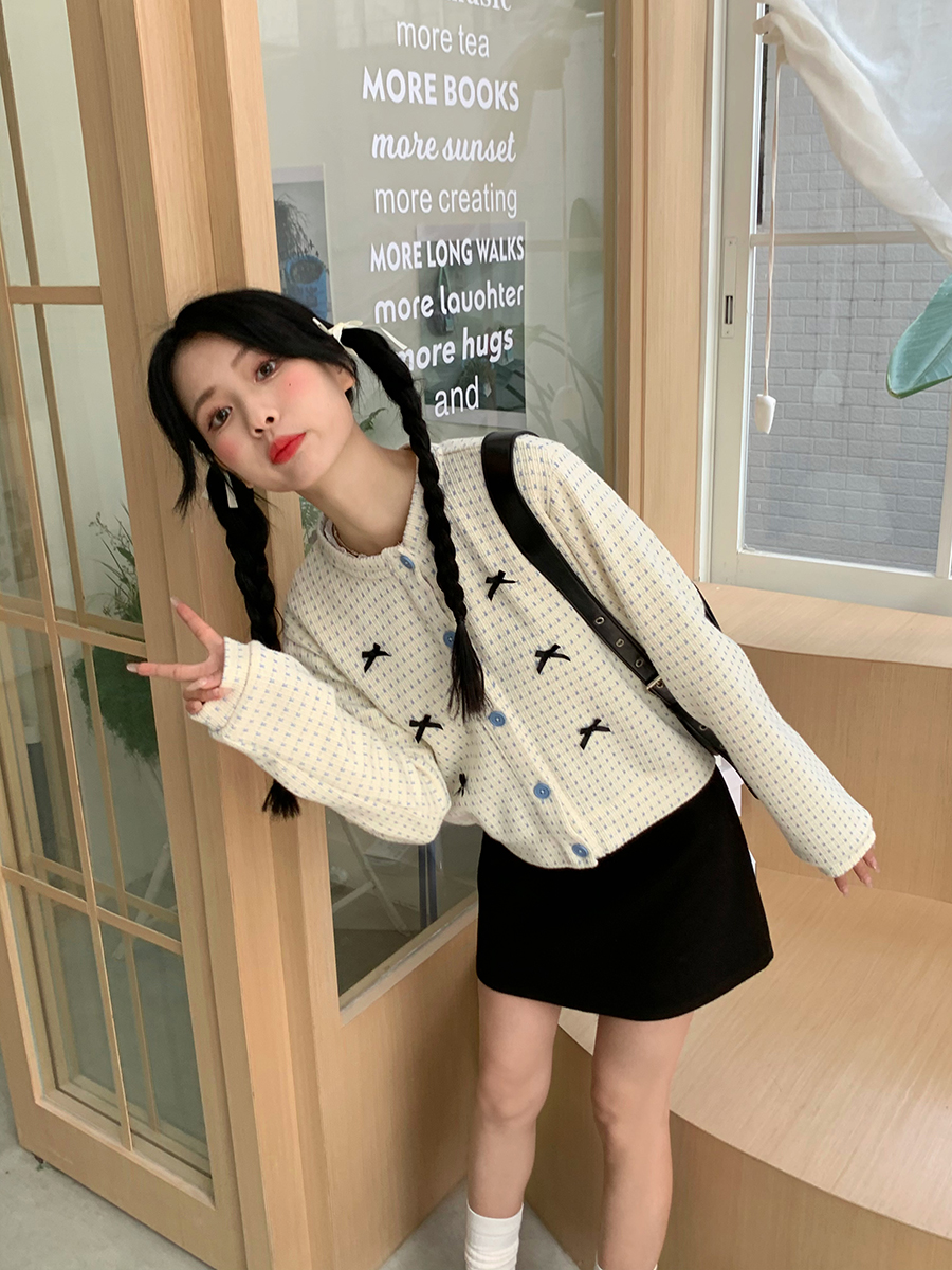 Punkhoo 春季杏色蝴蝶结开衫毛衣外套女宽松韩系针织衫少女学院风
