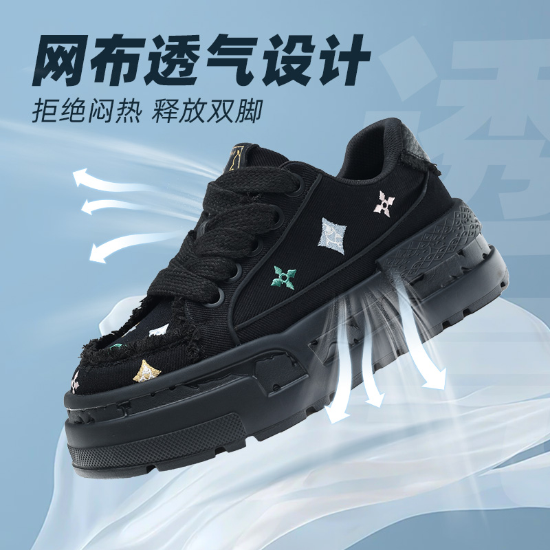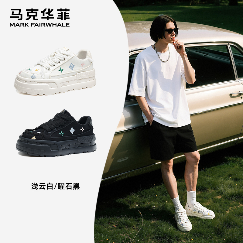 马克华菲板鞋男秋季增高男鞋2025新款黑色潮流透气鞋子男士休闲鞋