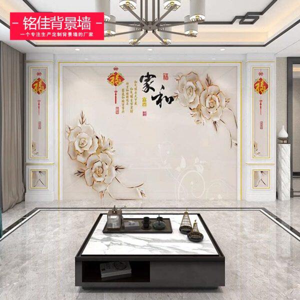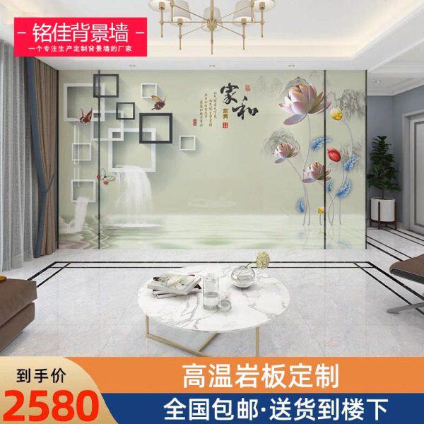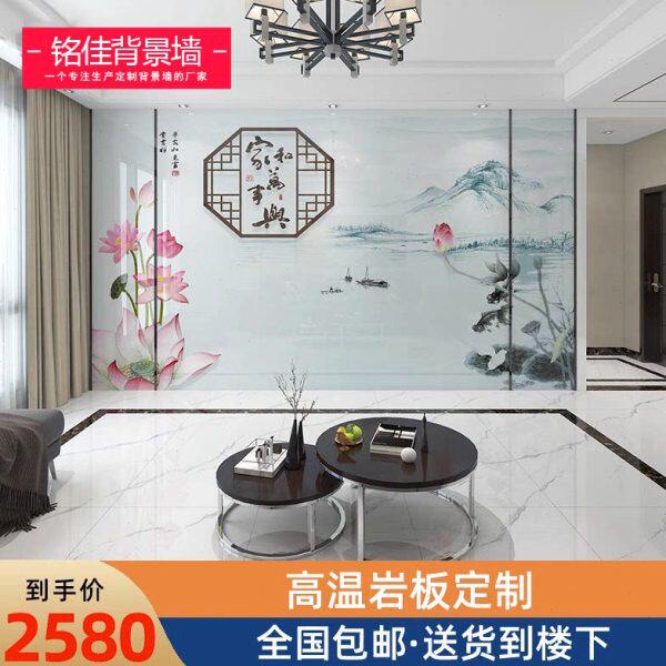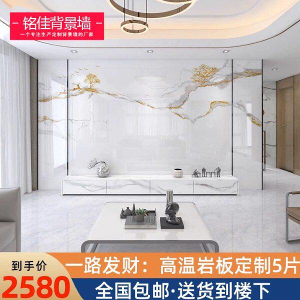 大理石新中式山水画电视背景墙定制客厅瓷砖墙影视新板2023石材岩
