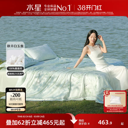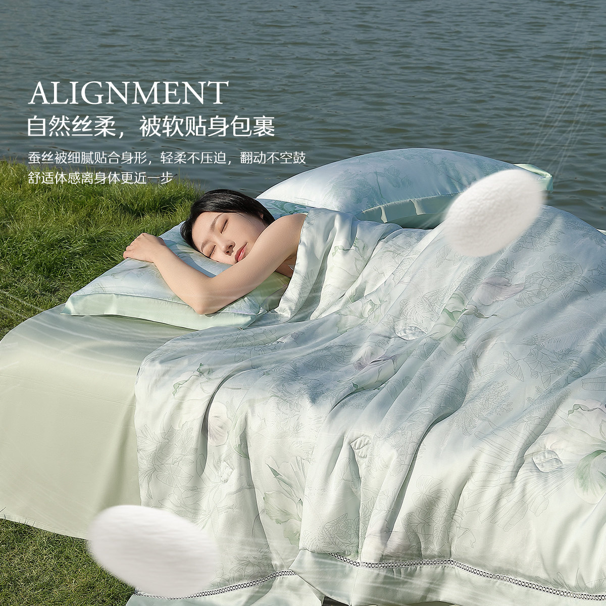 水星家纺60支兰精天丝桑蚕丝夏凉被A类抑菌空调被可水洗机洗夏被