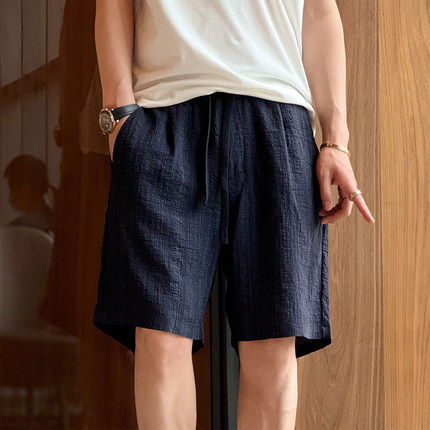 韩版简约高级皱纯色宽松休闲短裤男夏季潮流新款松紧腰抽绳沙滩裤