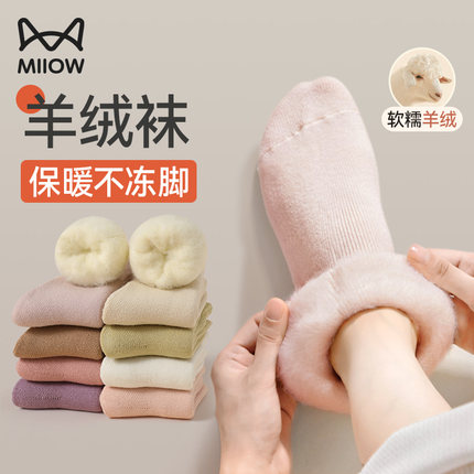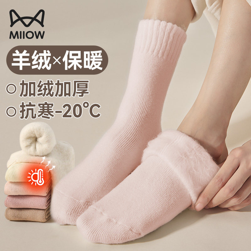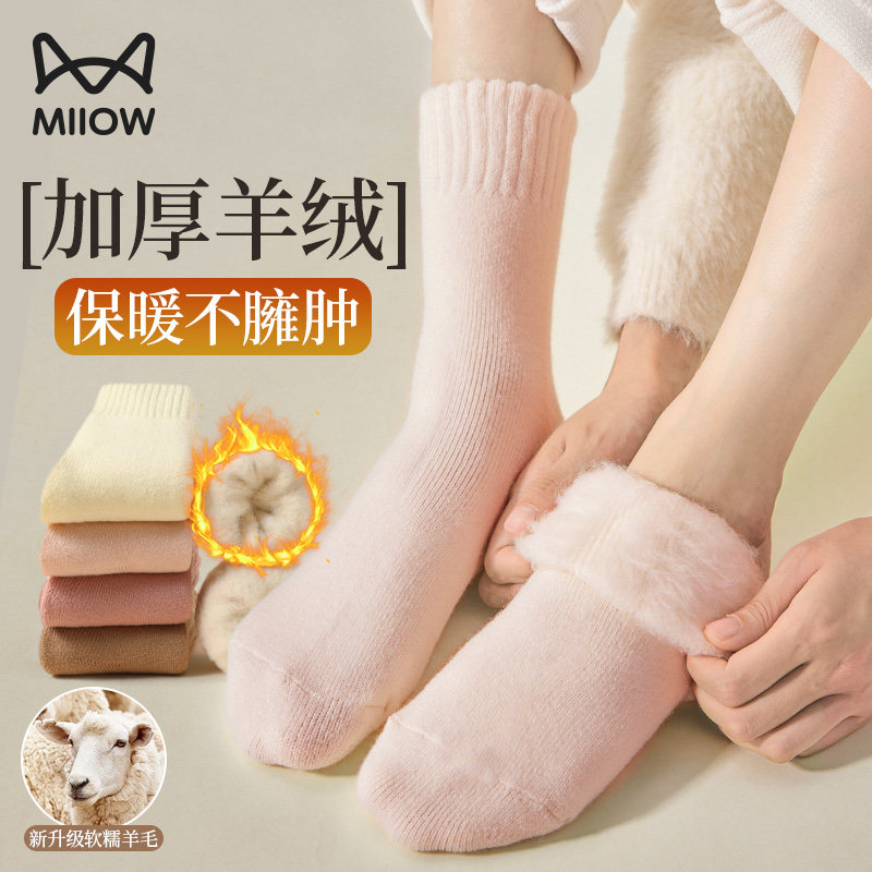 猫人羊毛袜子女款秋冬中筒袜羊绒加厚月子袜毛巾睡眠保暖地板长袜