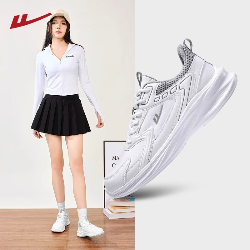 回力女鞋白色运动鞋秋冬新款皮面透气女士小白鞋子软底减震跑步鞋