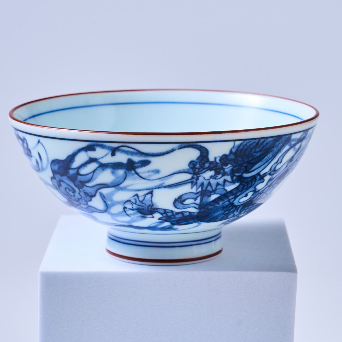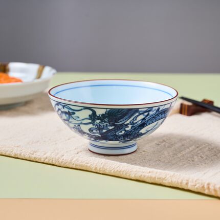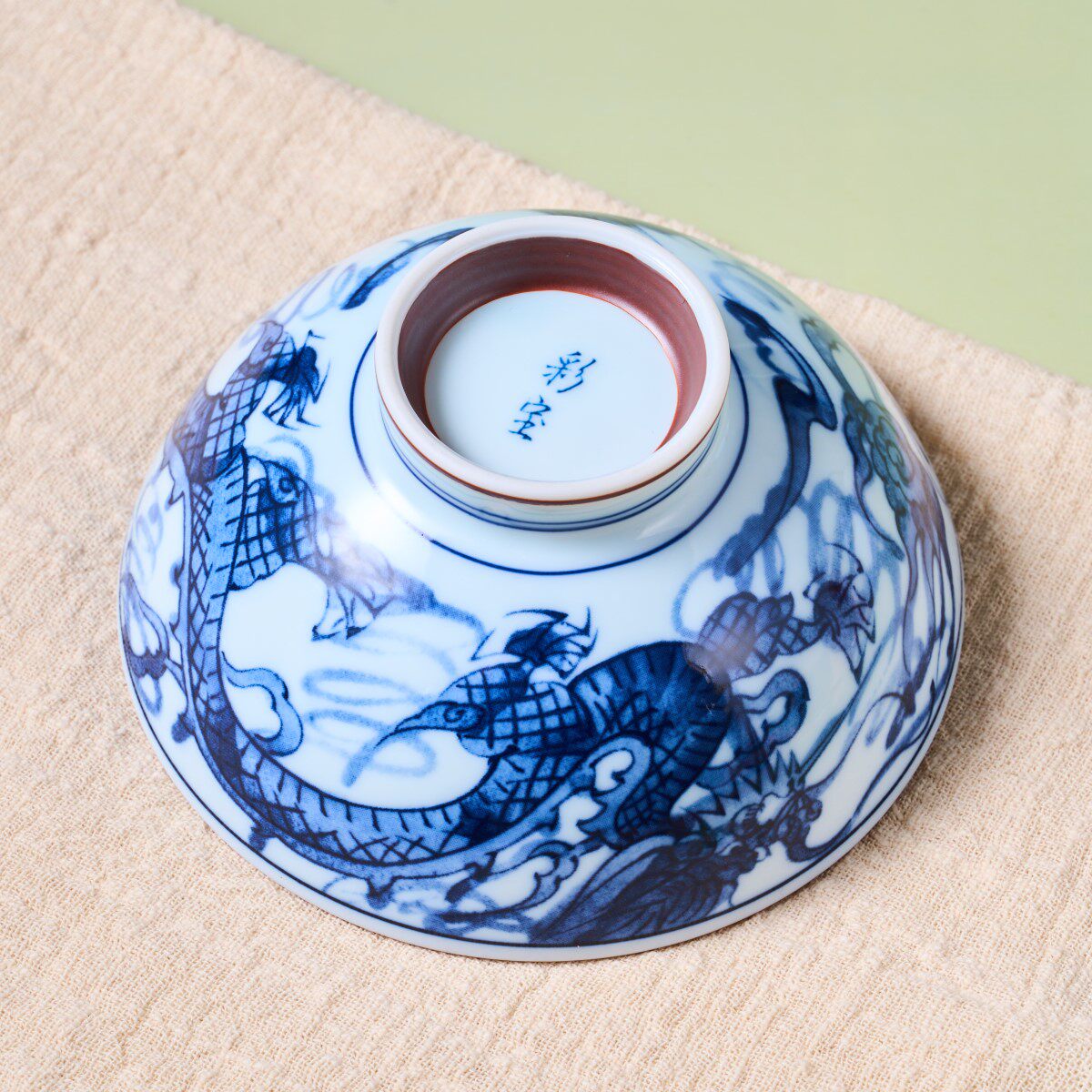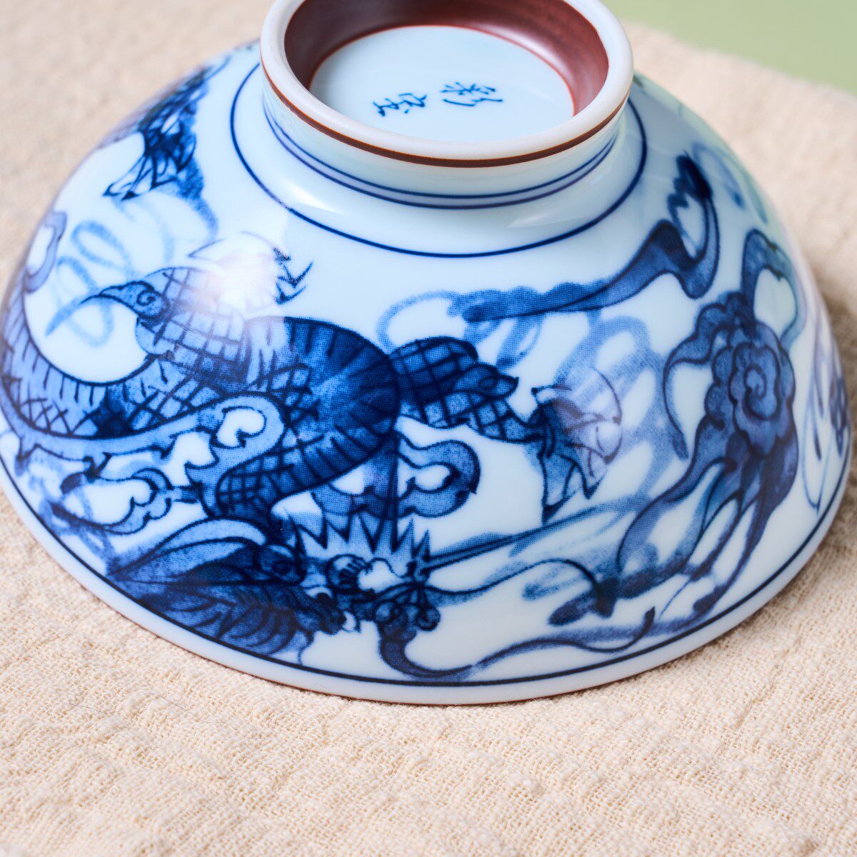 日本进口美浓烧龙纹青花瓷米饭碗甜品碗粥碗日式家用蒸碗蒸蛋碗