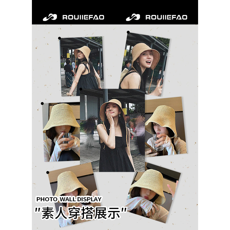 苏晓彤同款棉麻系带大檐草帽女夏季沙滩度假出游骑行防晒遮阳帽子