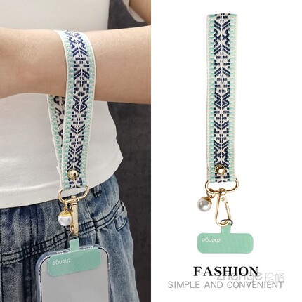 复古花纹织带手机挂绳手腕式短款