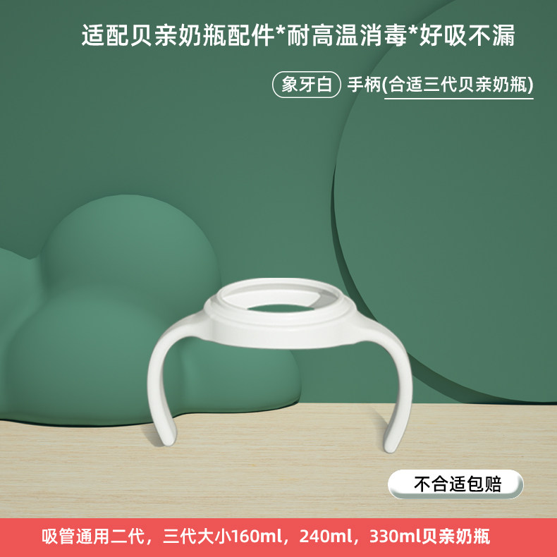 适配贝亲奶瓶配件第三代自然实感宽口径PPSU玻璃把手宽口径吸管