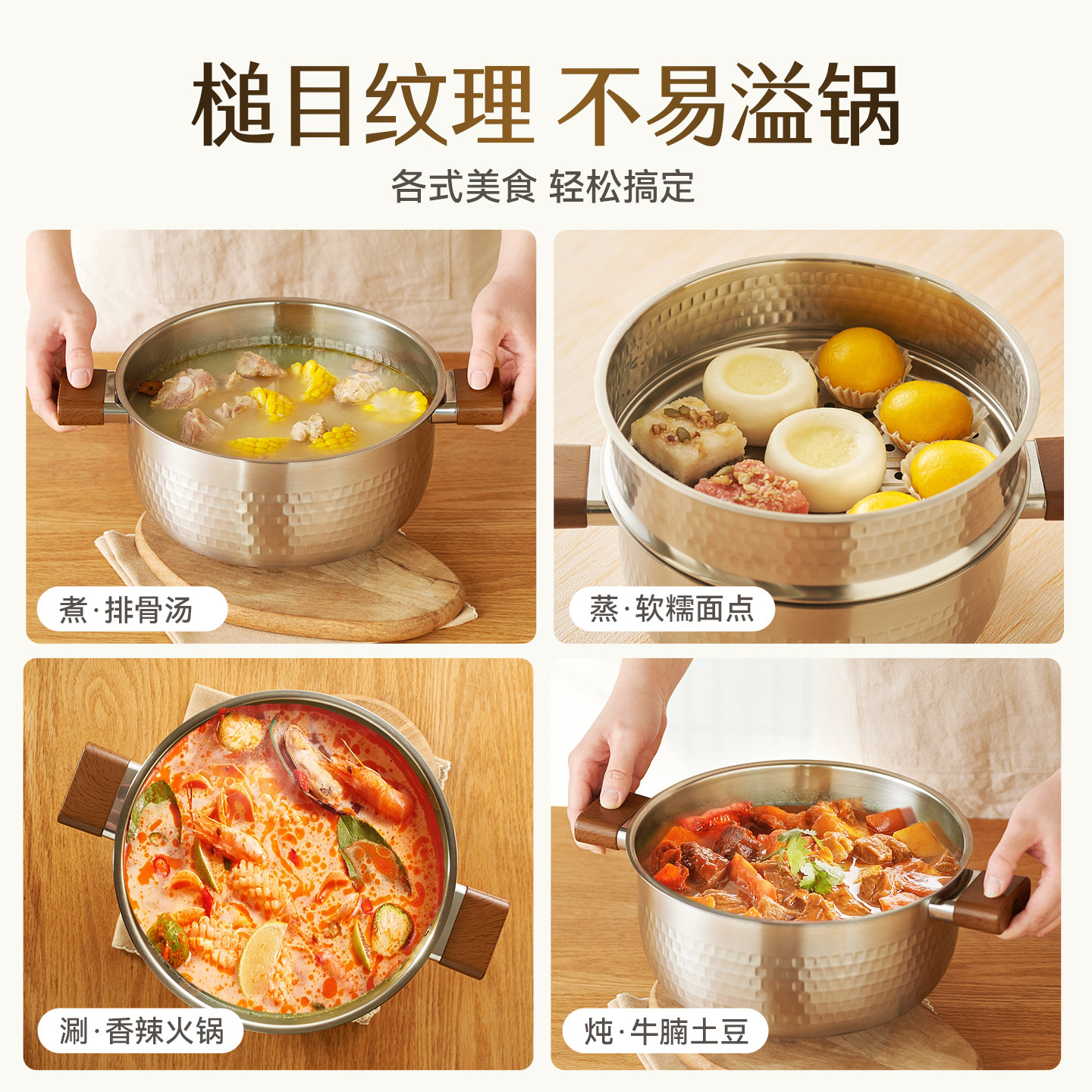 kimscook雪平汤锅家用大容量蒸锅食品级不锈钢炖锅燃气电磁炉通用