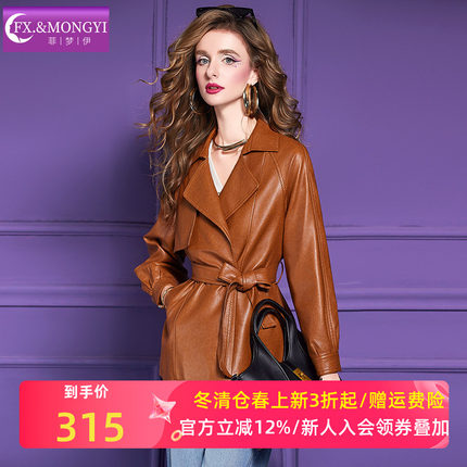 菲梦伊西装领皮衣外套女秋季复古设计感收腰机车服小个子短款上衣
