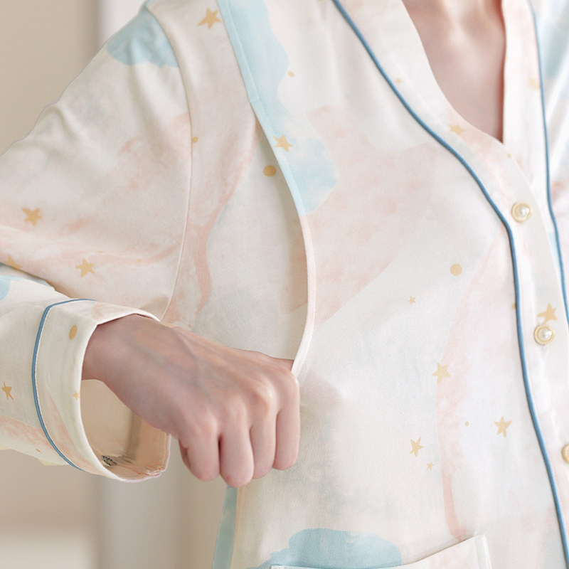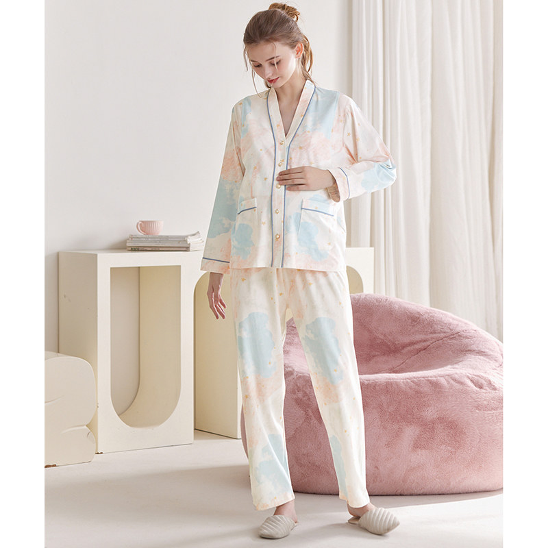 芬腾月子服女士睡衣秋季孕妇纯棉长袖套装产后哺乳全棉产妇家居服
