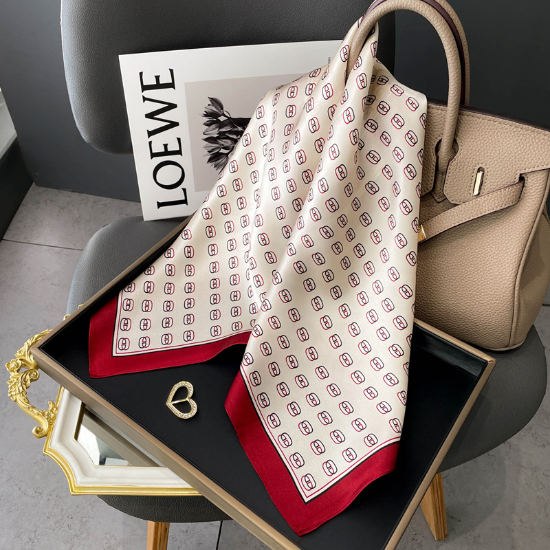 杭州丝绸小方巾丝巾女春秋季字母真丝桑蚕丝时尚百搭方巾薄款围巾