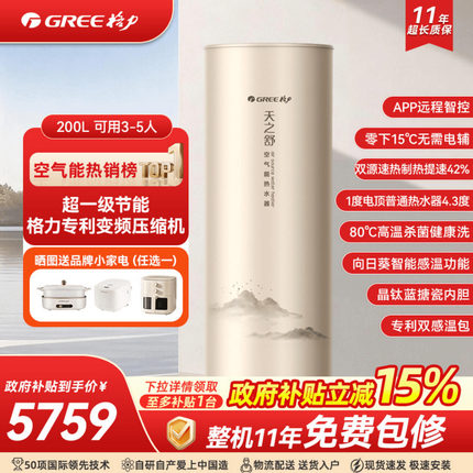 【政府补贴】格力空气能热水器家用一级能效200升L热泵变频天之舒