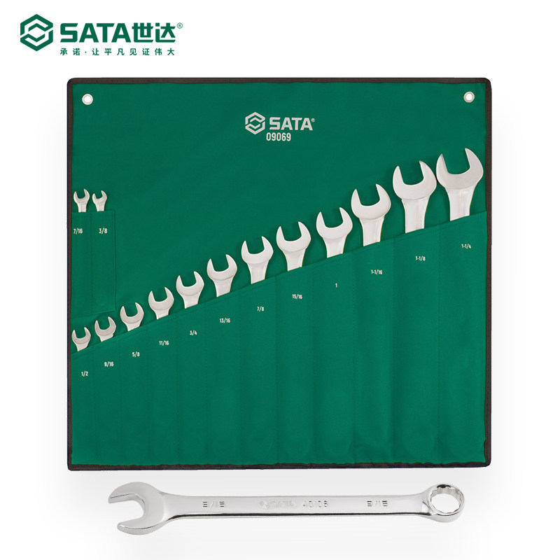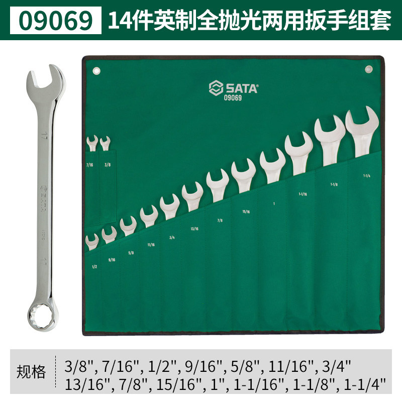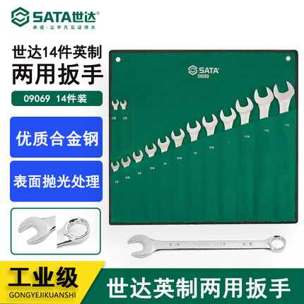 世达五金汽修工具英制套筒扳子叉口梅花开口呆扳手套装组合09069
