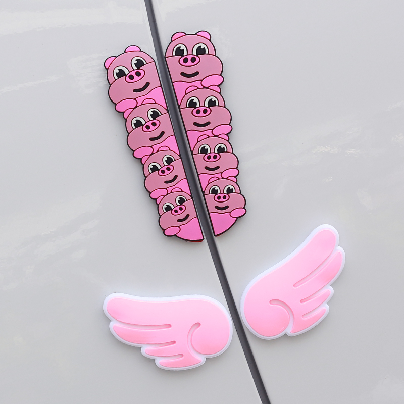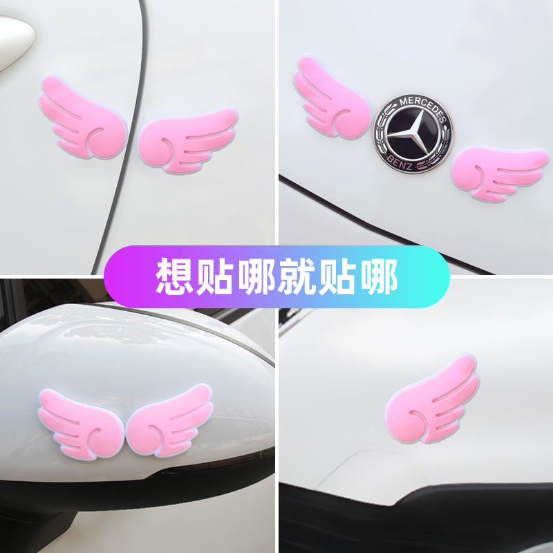 汽车防撞贴卡通可爱天使翅膀车门防刮蹭装饰贴后视镜保护防擦条女